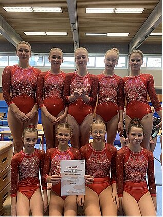 Zum Abschluss zeigte die Mannschaft am Boden noch einmal große Ausdrucksstärke und saubere Choreografien. Besonders die kraftvolle und flüssig geturnte Übung von Lilly Epple (12,55 Punkte) stach hervor. Mit 37,05 Punkten erzielte die WKG hier ihr bestes Geräteergebnis des Tages.
